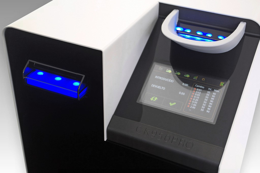 Aceita, paga, recicla e verifica todas as moedas, de